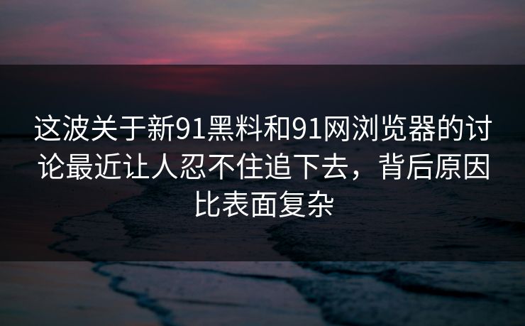 这波关于新91黑料和91网浏览器的讨论最近让人忍不住追下去,背后原因比表面复杂