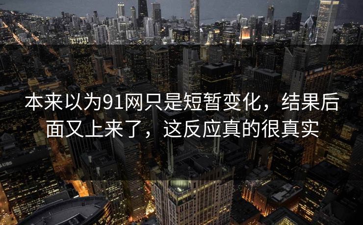 本来以为91网只是短暂变化,结果后面又上来了,这反应真的很真实 在互联网这个瞬息万变的世界,我们时常会遇到一些令人惊讶的变化和转折。作为一名资深的网络观察者,我曾以为91网只是短暂的波动,而那段时间的变化只是一场风中捉萤火。令人意想不到的是...