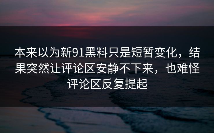本来以为新91黑料只是短暂变化,结果突然让评论区安静不下来,也难怪评论区反复提起
