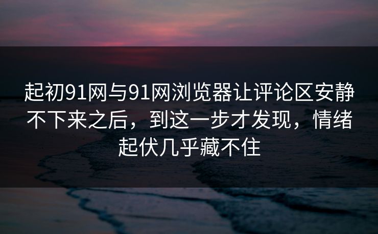 起初91网与91网浏览器让评论区安静不下来之后,到这一步才发现,情绪起伏几乎藏不住