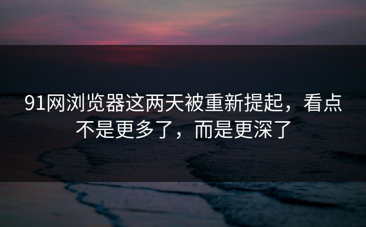关于91网与91网浏览器往后看,很多人忽略了最重要的一段,看点不是更多了,而是更深了
